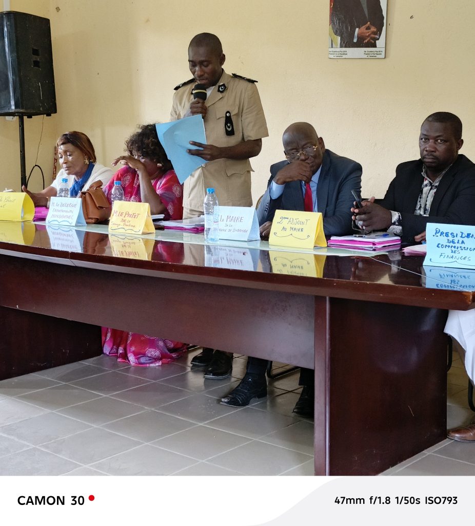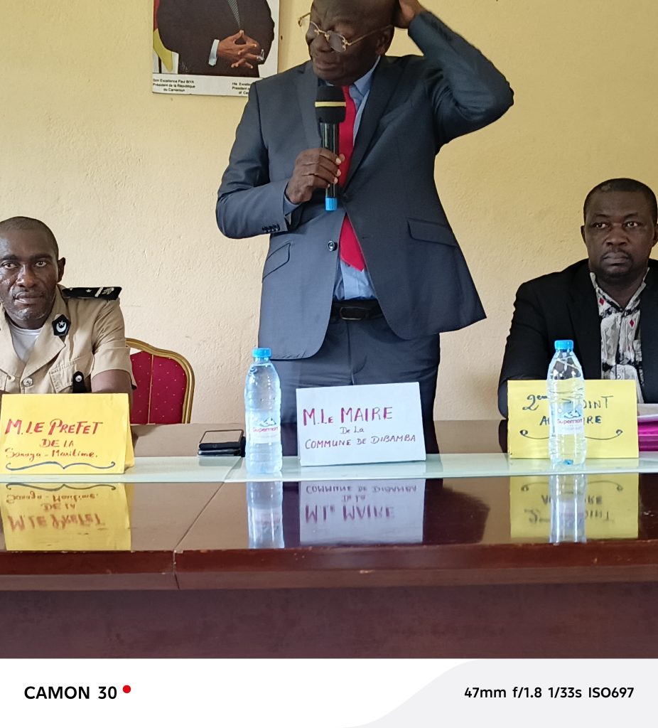 Le Conseil municipal de la commune de Dibamba s’est tenu ce jour dans la salle des actes de ladite commune, sous la présidence du Maire de Dibamba, en présence du Sous-préfet de l’arrondissement de Dibamba, représentant le Préfet du département de la Sanaga-Maritime.Ont également pris part à ces travaux le deuxième adjoint au Maire, le délégué du MINDDEVEL, un membre du Conseil régional, le Président du Conseil municipal, le Secrétaire général de la commune, le Receveur municipal, vingt-quatre (24) conseillers municipaux, ainsi que certains chefs traditionnels et membres de la population.
