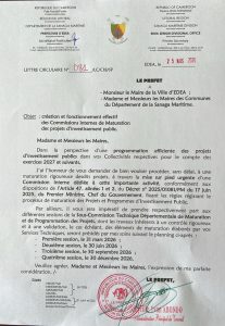À la suite de la lettre circulaire N°081/LC/C18/SP du 25 mars 2026 signée par le Préfet du Département de la Sanaga-Maritime, Emile Jean Abondo, invitant les Collectivités Territoriales Décentralisées à créer et rendre opérationnelles les Commissions Internes de Maturation des projets d’investissement public, la Commune de Dibamba a pris des mesures concrètes pour se conformer à ces hautes instructions.